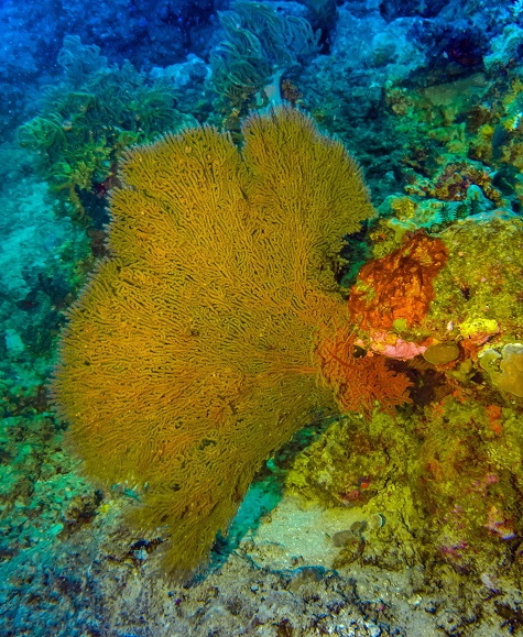 The outer edge of the reef was covered with sea fans and feather stars, indications
